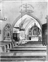 Die Kirche wurde 1945 bei den letzten Kämpfen um unsere Heimat durch Fliegerbomben schwer beschädigt und wurde 1973 von den Polen abgebrochen.